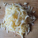 • Rasp de kaas. Ik gebruik een jong-belegen boerenkaas.
