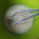 • Klop de eieren met het water los in de kom.