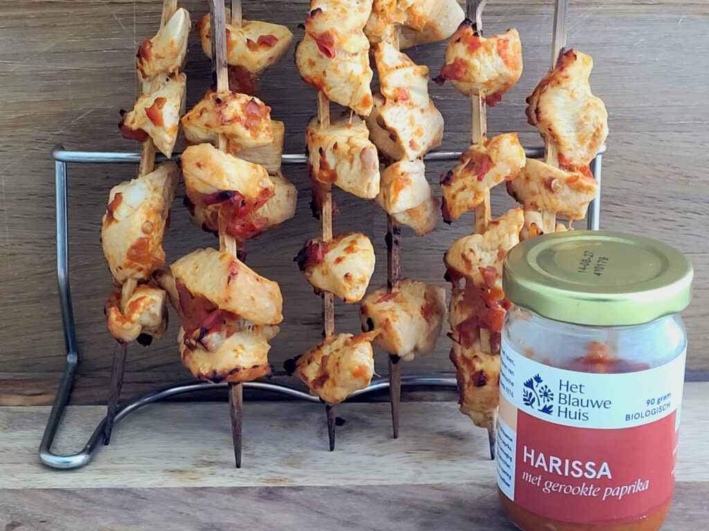 Harissa kip op spiesjes heeft veel extra smaak door de harissa. Kip heeft van zichzelf namelijk niet superveel smaak, al kan dit per kip verschillen.
