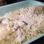 - Giet de double cream (slagroom/mascarpone mengsel) erover heen. Bak in de voorverwarmde oven totdat het mooi goudbruin is (ongeveer 15-20 minuten).