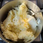 Je kan zelf variëren met het soort kaas dat je gebruikt. Ik gebruik een jonge kaas. Je raspt de kaas zodat deze snel kan smelten. Kies een kaas die je lekker vindt. Hoe sterker de smaak van de kaas, hoe sterker deze saus naar die kaas zal smaken. Met een milde jonge kaas, heeft deze saus een milde romige smaak.